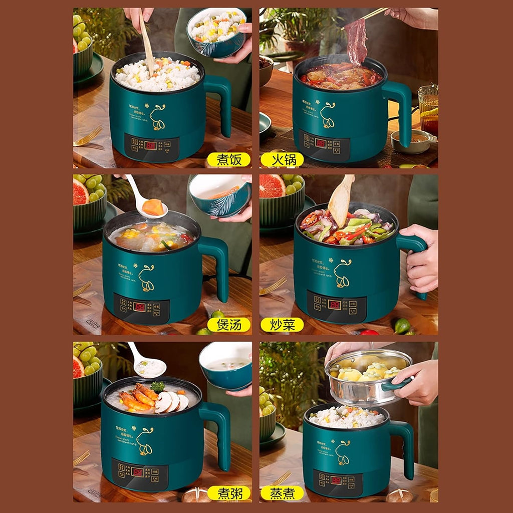 Esta arrocera eléctrica multifuncional de 1.8 litros cuenta con recubrimiento antiadherente premium, ideal para preparar arroz, sopas, guisos y más 🍲✨. Su diseño práctico y seguro la hace perfecta para el hogar, oficinas o familias pequeñas y medianas.