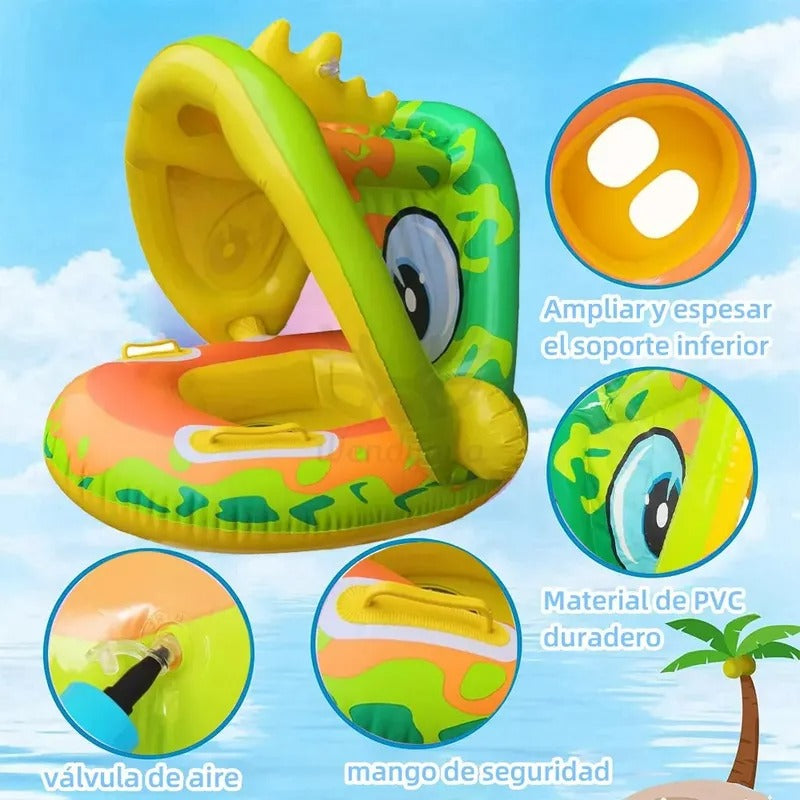 Este flotador salvavidas brinda soporte y estabilidad mientras el niño se mueve y juega en la piscina o en la playa, ayudando a que se sienta cómodo y confiado en el agua. Ideal para momentos familiares llenos de risas y tranquilidad.