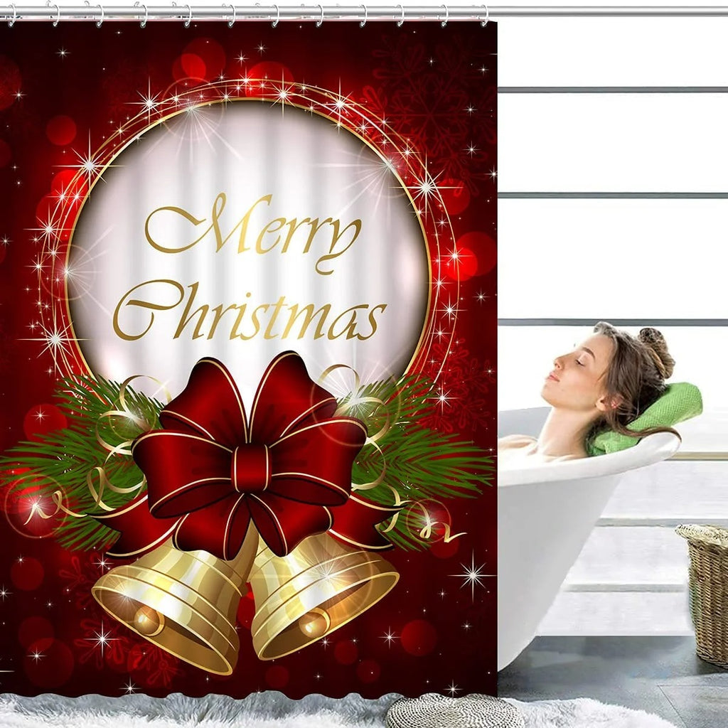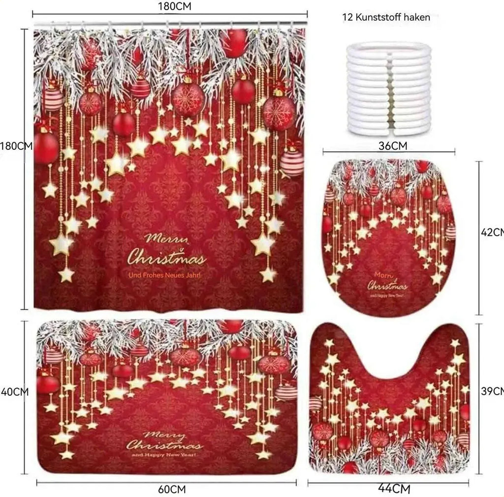 ✨El set incluye cortina impermeable de ducha, alfombra antideslizante, funda para el inodoro y tapa decorativa, todo con diseños navideños vibrantes que harán que cada visita al baño se sienta especial.🎄