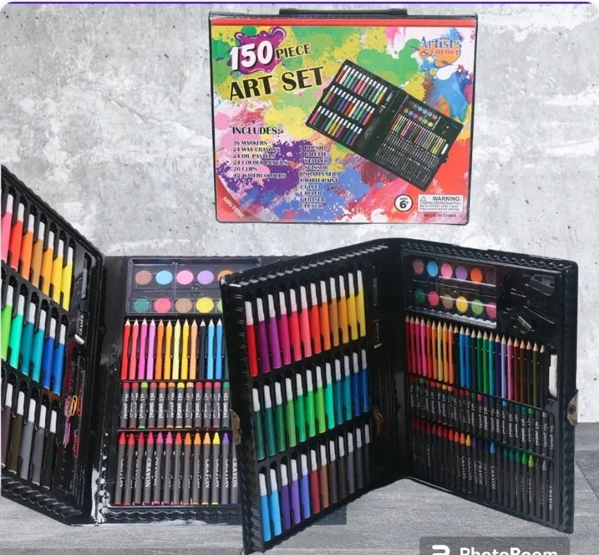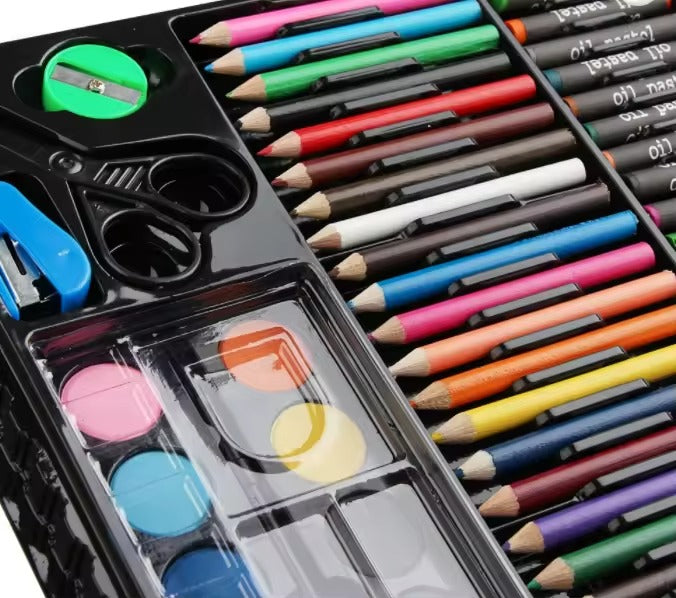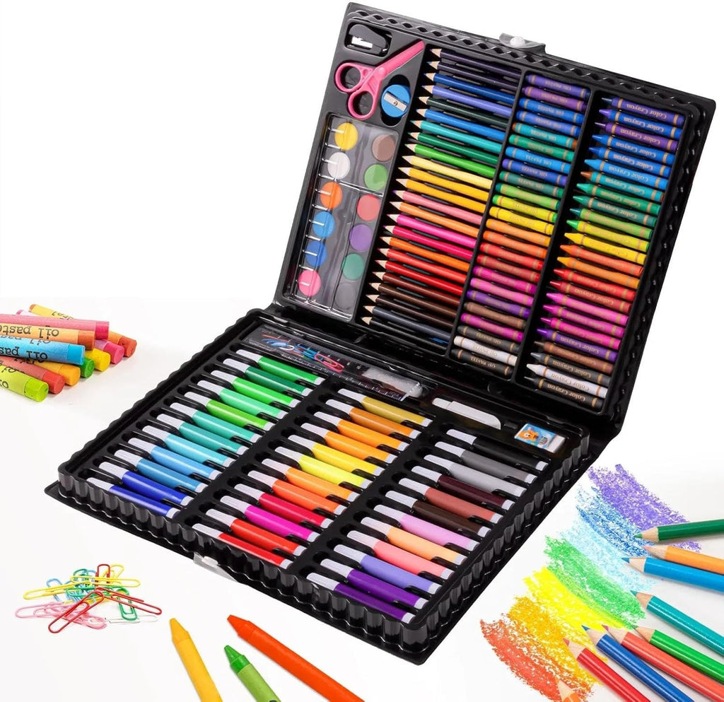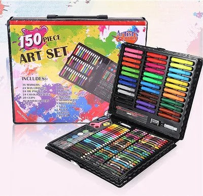 Este increíble set de arte de 150 piezas incluye todo lo necesario para dibujar, colorear y pintar, ideal para el colegio o para horas de diversión creativa en casa. Todo viene organizado en un práctico estuche, fácil de transportar y guardar.
